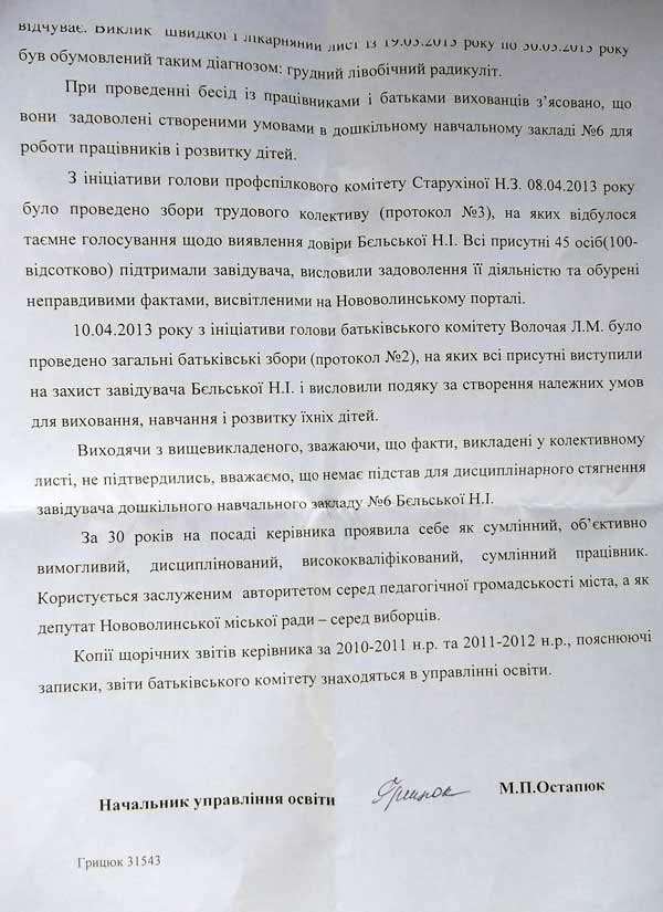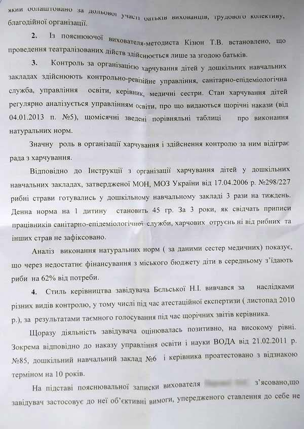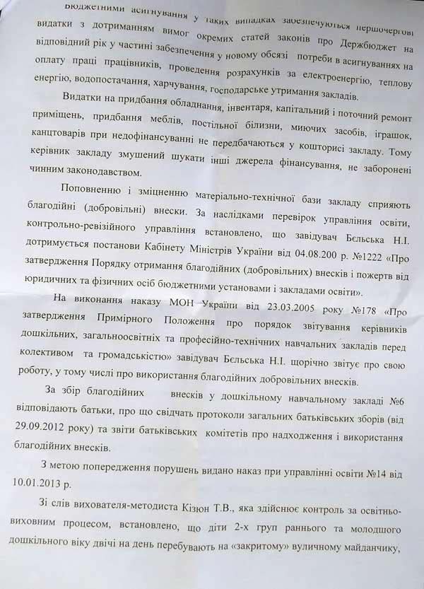 10 квітня 2013 року із супровідною №1119 вих.13 звернення було відправлене в міське Управління освіти пану М.Остапюку для перевірки фактів зловживань, наведених заявниками.