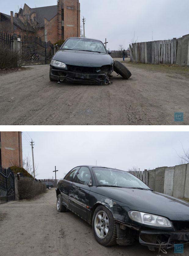 Водій «БМВ» червоного кольору, рухаючись по вулиці Інтернаціональній, не надав перевагу в русі (не виконав вимогу знака «Стоп») та на перехресті із Грушевського врізався у «Фіат Добло» сірого кольору, який їхав у напрямку автошколи та водоканалу.