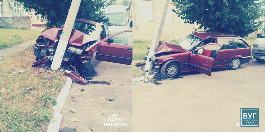 Як стало відомо “Бугу“, за кермом іномарки була 14-ти літня дівчина, яка не впоралась із керуванням автомобіля і в’їхала просто у стовп.