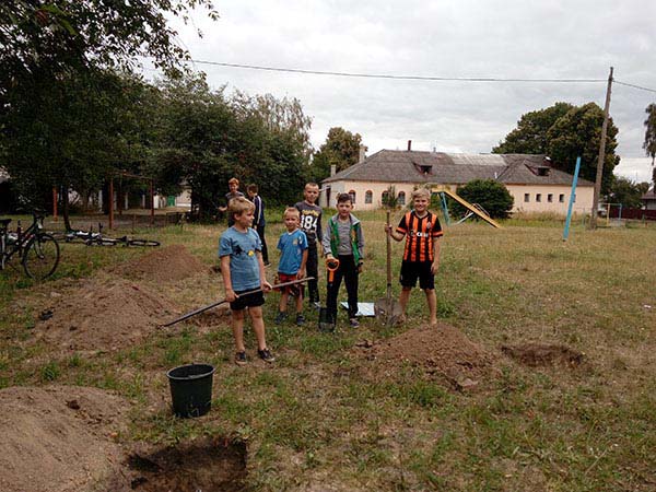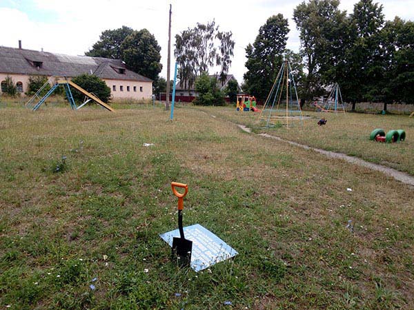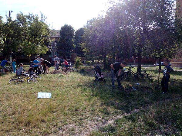 Мешканці Благодатного та діти, помітивши роботу на дитячому майданчику, почали активно допомагати: