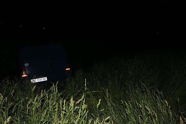 Водій мікроавтобусу втік. Рухаючись по дорозі, він минав собаку, який раптово вискочив йому на дорогу, авто занесло в напрямку озера і в рові зупинилось“, – розповів не на камеру пасажир і власник авто. На місці ДТП працівники поліції провели йому алкотест, який показав 3.15 проміле алкоголю в крові.