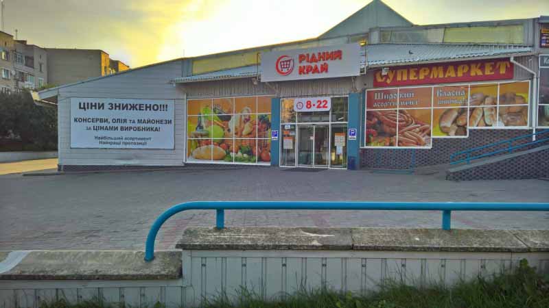 І от уже Рідний Край змінює дизайн та вивішує рекламу про великі знижки.