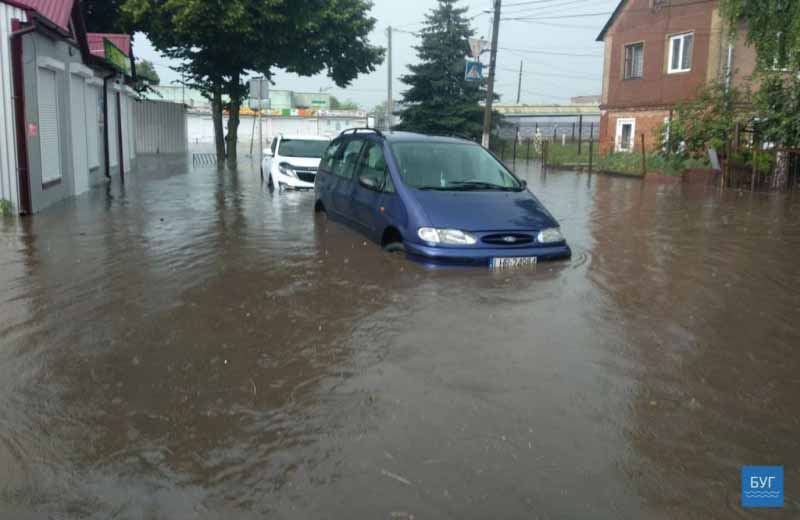 Літня злива у Нововолинську. Затоплена вулиця, будинок та автомобілі