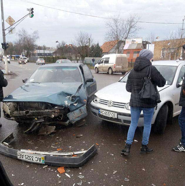 Не розминулись два легкових автобомілі: «Volkswagen Golf» та «AUDI». Аварія сталась сьогодні о 8-ій годині ранку на перехресті вул. Шахтарської та об’їздної Новововлинська.