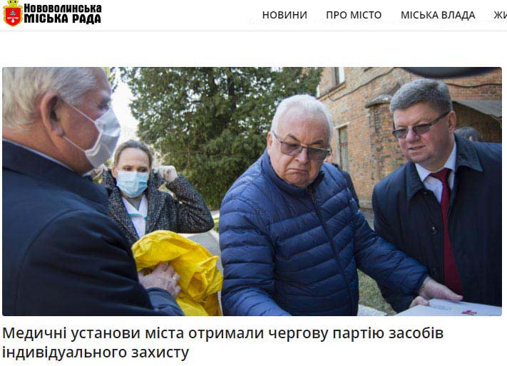 “На прохання міського голови Віктора Сапожнікова 50 гідрокостюмів багаторазового використання чеського виробництва та понад 3300 одноразових масок придбали Нововолинський м’ясокомбінат та ТзОВ «Птахокомплекс «Губин»”