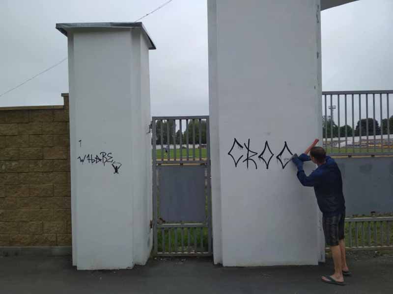У Нововолинську на арці вхідних воріт стадіону СОКу «Шахтар» двоє молодиків залишили написи.