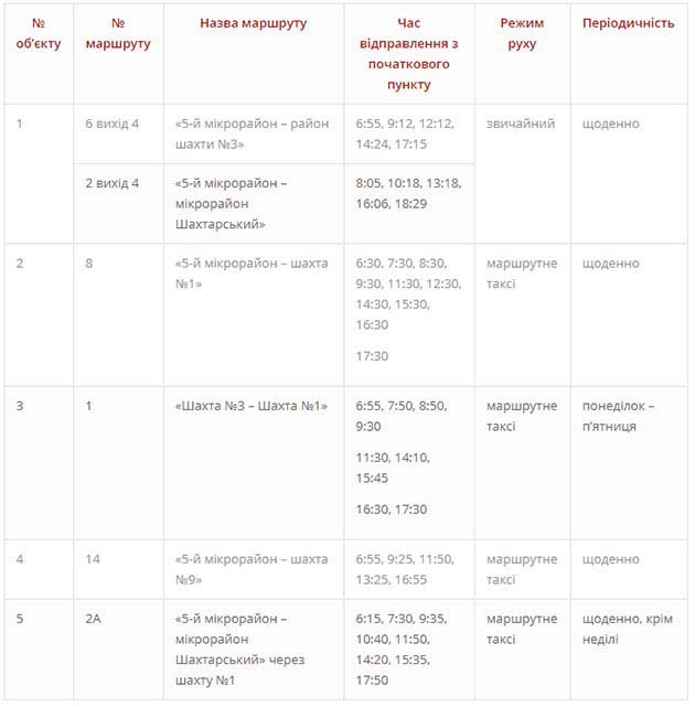 Об’єкти конкурсів на перевезення пасажирів на автобусних маршрутах загального користування: