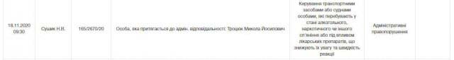 Оскільки від проходження алкотесту та освідування в медичному закладі він відмовився, то поліцейські склали протокол за статтею 130 КУпАП. Крім того, складений протокол за не зупинку на вимогу поліцейських.