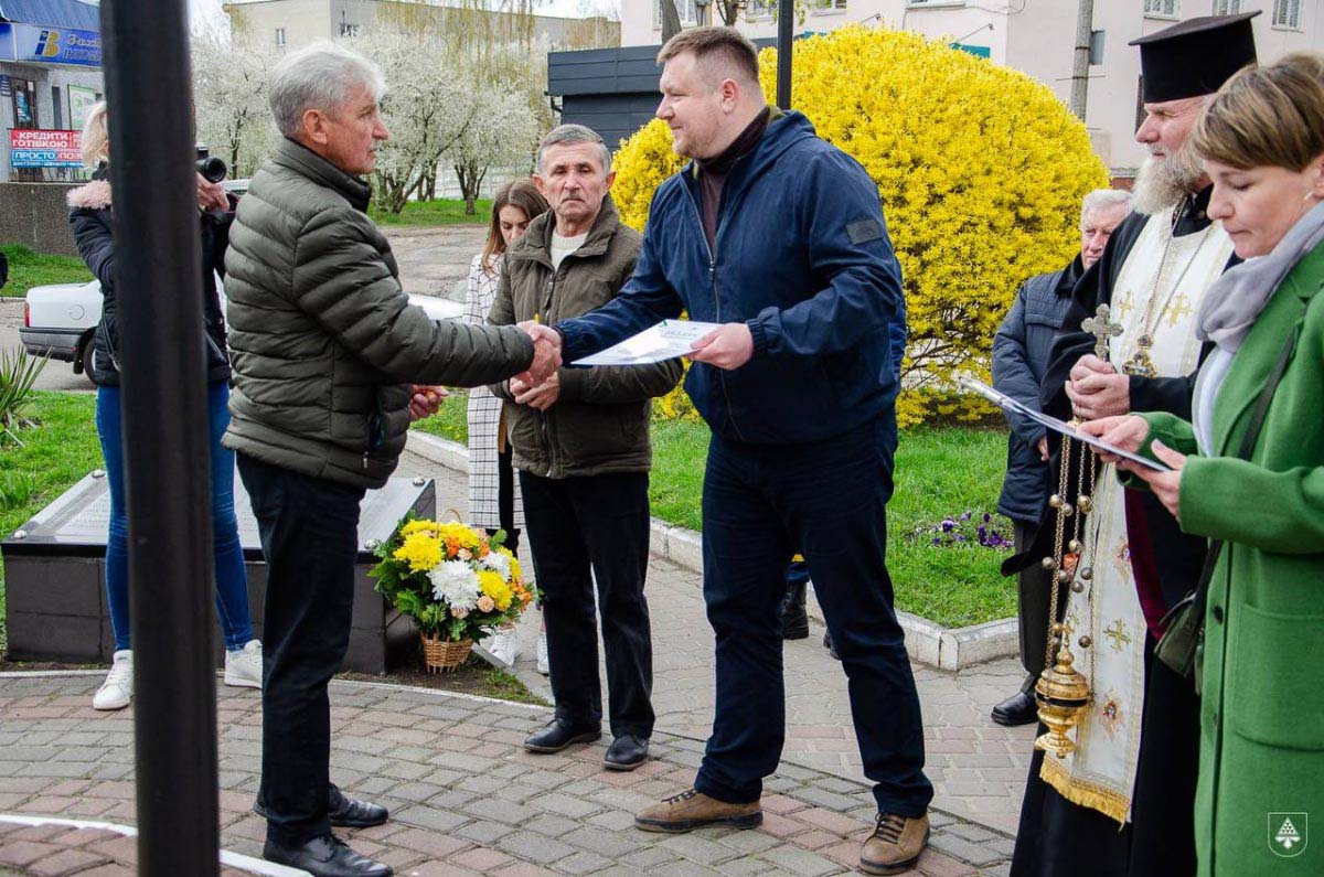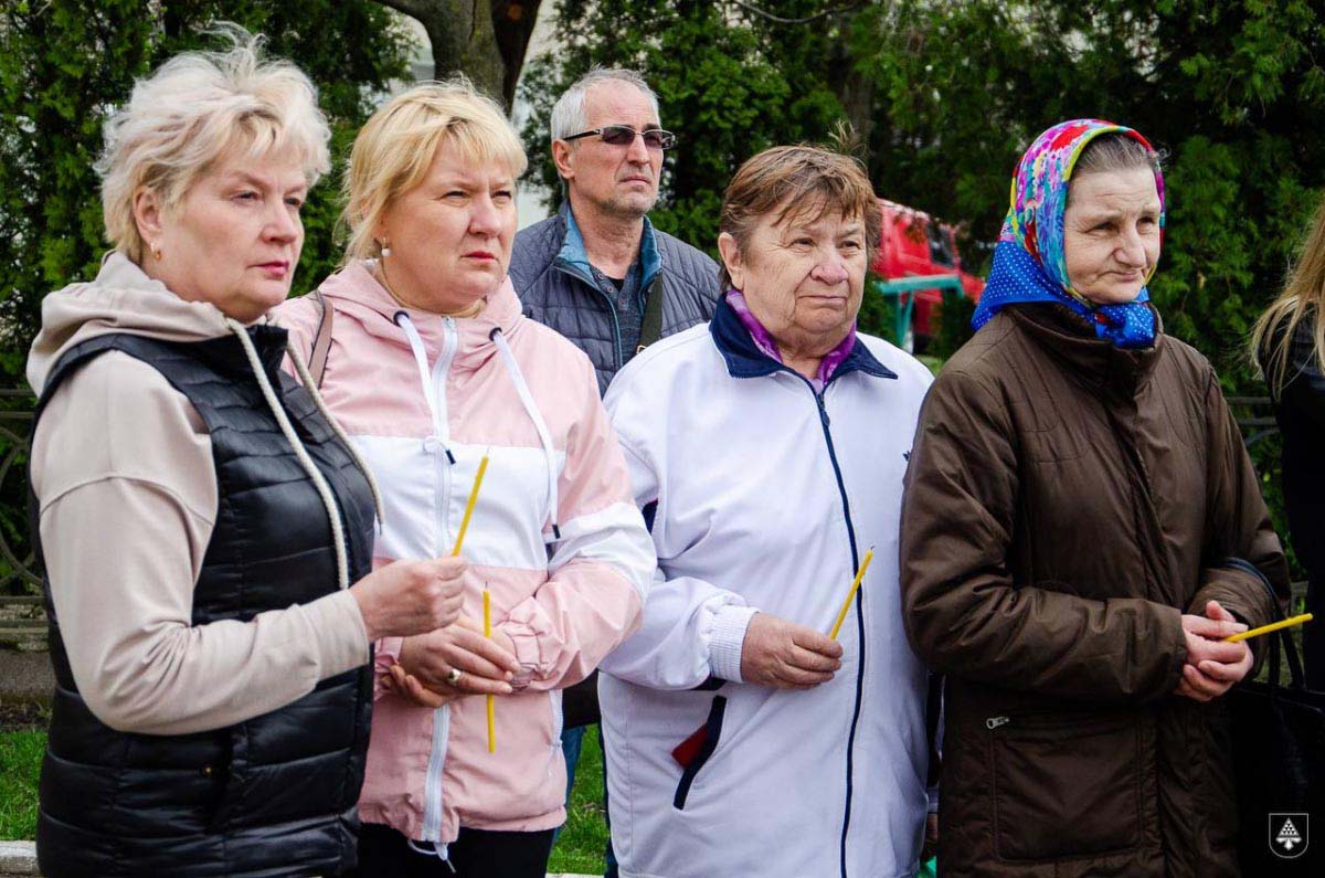 Хвилиною мовчання та скорботним дзвоном вшанували пам’ять загиблих. Разом з учасниками громадської організації «Союз інвалідів Чорнобиля Нововолинська» та духовенством поклали живі квіти до пам’ятного знаку.