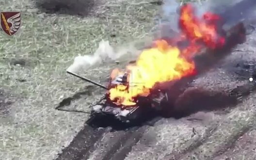 Російський танк виїхав для підтримки штурму українських позицій, але був зупинений та спалений дроном-камікадзе у районі Новомихайлівки Донецької області.