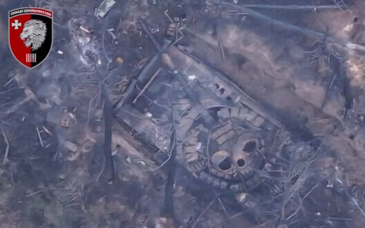 Переглянути ВІДЕО: https://censor.net/ua/video_news/3503264/znyschennya_rosiyiskogo_tanku_skydamy_z_dronu