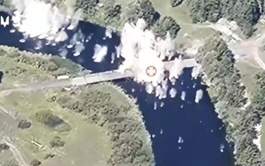 У мережі опублікований відеозапис, на якому зафільмований фрагмент знищення двох російських переправ через річку Сейм на Курщині.