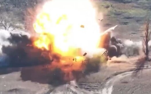 Ворожа вантажівка із боєприпасами розчиняється у повітрі після атаки українського дрона. ВIДЕО