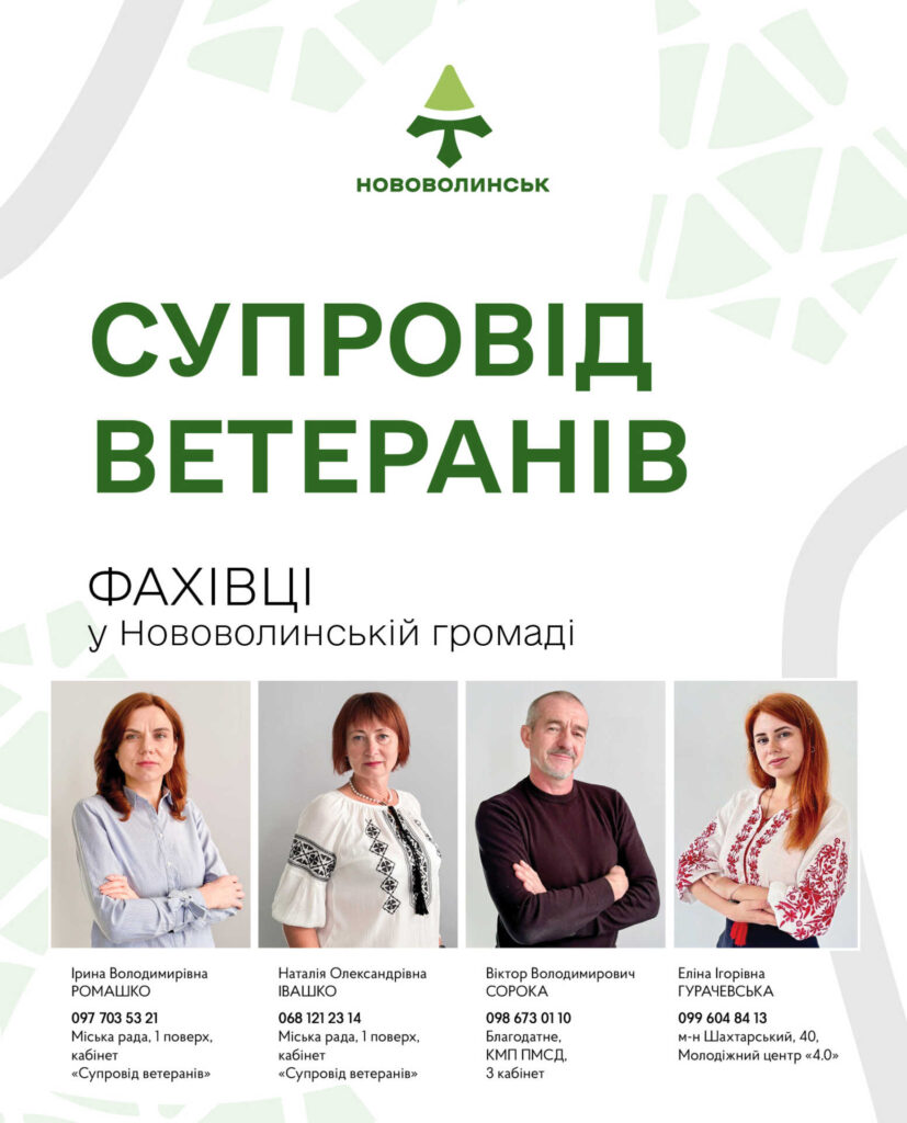 Нововолинська міська рада (пр-т Дружби, 27, 1 поверх, каб. «Супровід ветеранів»):