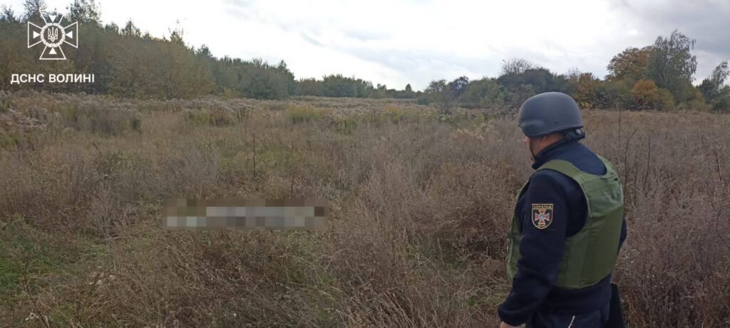 Фахівець оперативно прибув на місце, ідентифікував його та встановив, що предмет вибухонебезпечний. Для подальшого вилучення та знищення були залучені піротехнічні підрозділи ДСНС Волині.