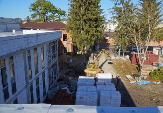 Наразі тривають роботи із прокладання зовнішніх мереж іншим підрядником, у зв’язку з чим тимчасово перекрили частину вулиці Генерала Шухевича. Також на об’єкті передбачено спорудження й облаштування власної котельні.
