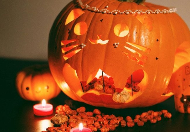 Гарбузові ліхтарі (Jack-o’-lantern) — вирізані гарбузи з підсвіткою всередині стали символом свята.