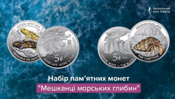 Монети присвячені мешканцям Чорного і Азовського морів – раку-самітнику та бичку-кругляку, повідомляє пресслужба НБУ.