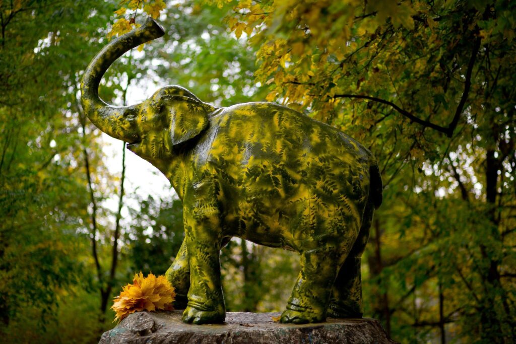 Саме тому я вирішила використовувати слоника і цей колір – він зараз дуже зливається з деревами та парком. Моя ідея була в тому, щоб привернути увагу до саду.