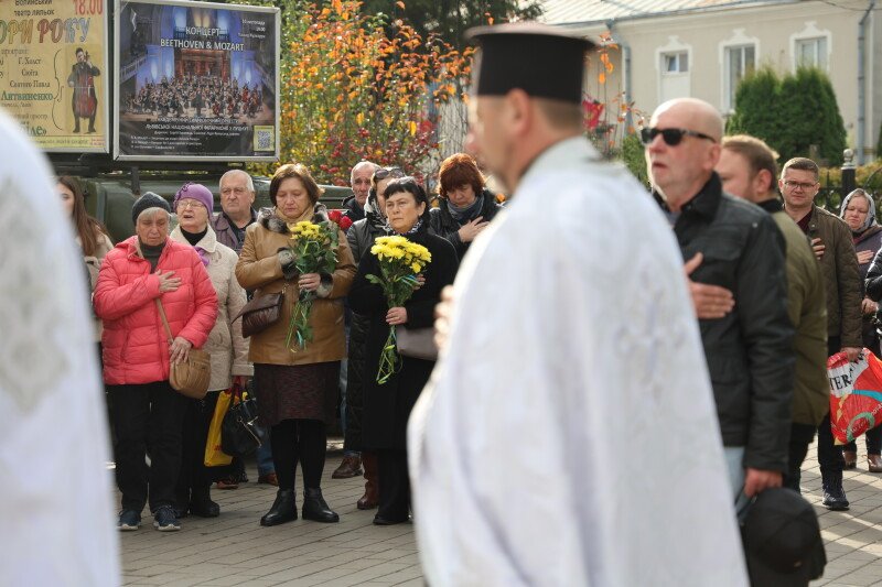 На відспівування військовослужбовця до храму прийшли родина, побратими, громадськість. Віддав останню шану воїну й секретар Луцької міської ради Юрій Безпятко.