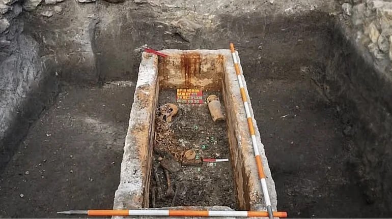 Під кам’яною кришкою археологи виявили скелет жінки та десятки артефактів, пише Українська правда з посиланням на Associated Press.