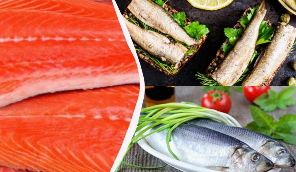 Яка риба містить велику кількість омега-3 жирних кислот: лосось, скумбрія, анчоуси, сардини та оселедець.
