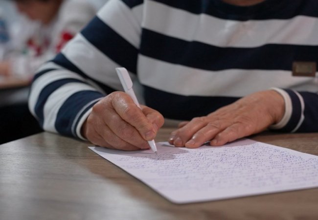 “Цей текст я вважаю складним, але він актуальний на цей час, — додає жінка. — Деякі слова були для мене незнайомі. Але я завжди була не байдужа до правопису, тому долучаюся до написання Радіодиктанту. Прикро, що зробила одну помилку, треба було довше подумати”.