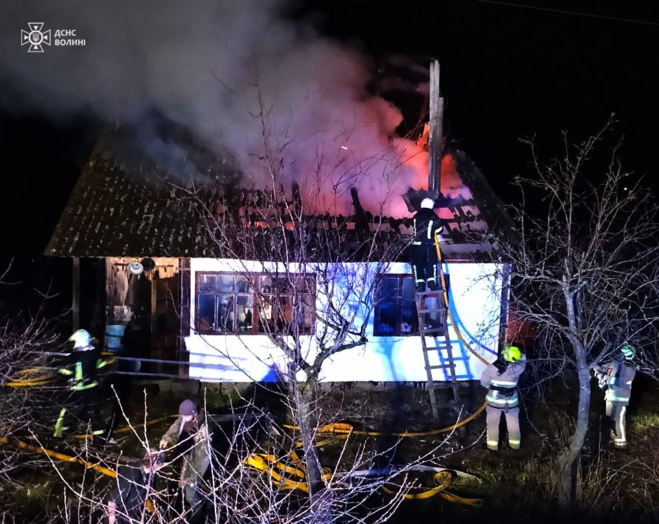 2 грудня увечері трапилася пожежа в с. Ставок Олицької громади – вогонь охопив покрівлю й перекриття дерев’яного житлового будинку.