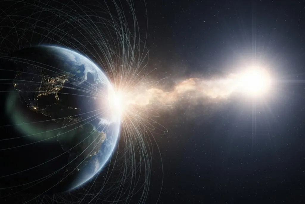 Магнітна буря — це реакція магнітосфери Землі на спалахи та вибухи на Сонці. Під час цих процесів виділяється велика кількість енергії у вигляді заряджених частинок — електронів та протонів. Коли вони досягають Землі, відбуваються коливання, які фіксуються як сонячні або магнітні бурі.