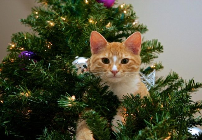 Котяче дерево можна поставити поруч із основною ялинкою, але не настільки близько, щоб кіт міг діставати іграшки. Також важливо добре закріпити ялинку, щоб та не перекинулася.
