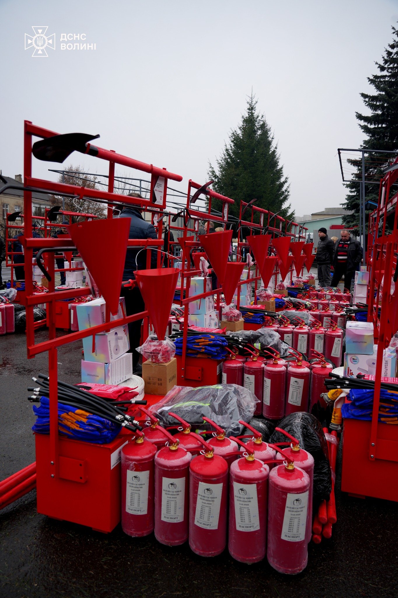 Сьогодні працівники 25 підрозділів місцевої пожежної охорони Волині отримали важливе підсилення – комплекти бойового одягу та засоби пожежогасіння від Волинської обласної організації Товариства Червоного Хреста України.