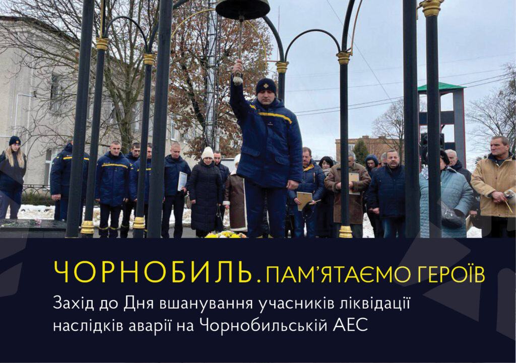 У п’ятницю, 12 грудня, о 14:00 відбудеться пам’ятний захід «Чорнобиль. Пам’ятаємо героїв», присвячений Дню вшанування учасників ліквідації наслідків аварії на Чорнобильській АЕС.
