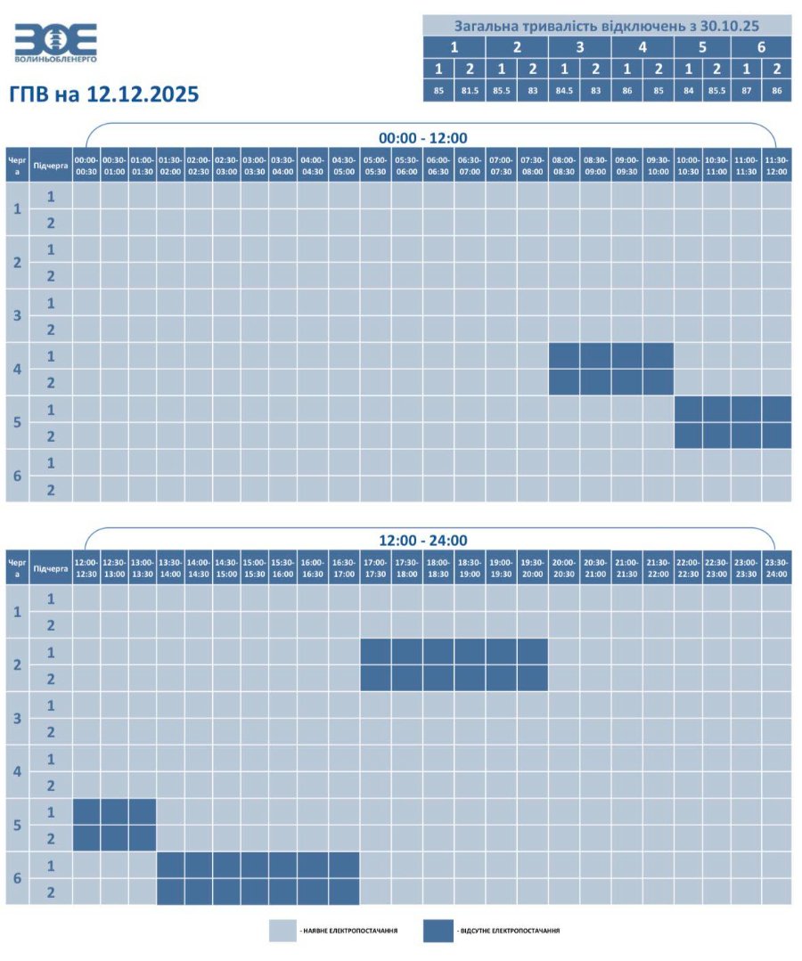 Через складну ситуацію в енергосистемі – завтра, 12 грудня на території Волинської області будуть застосовуватись заходи обмеження споживання.