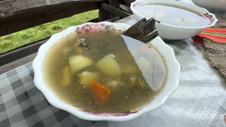 «Чому цей борщ варили у цих селах – тому що на березі самої річки це було дуже доступно – зранку зловили рибку, щавлю нарвали, картоплі накопали, якщо це серпень. Стали біля плити, зварили смачний і поживний борщ», – говорить жінка.