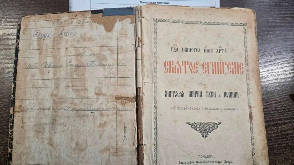 Столітнє «Святоє Євангеліє Господа нашого Іісуса Христа от Матвея, Марка, Луки, Іоанна» вилучили в листопаді 2024 року. Книгу видано в 1907 році у Почаєві (типографія Почаєво-Успенської Лаври). Це видання становить значну культурну та історичну цінність, адже є зразком почаївського церковного книгодрукування початку ХХ століття, важливим свідченням духовної традиції, книжкової культури та історії українських сакральних осередків.