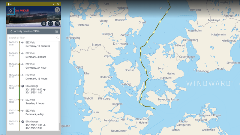 Mikati саме так і вчинив. Дані Windward також показують, що з 10 по 12 грудня він знову вимкнув транспондери поблизу головного російського балтійського порту експорту сирої нафти – Усть-Луги.