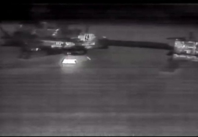 Бортова камера безпілотника зафіксувала успішне влучання в район газотурбінної установки платформи.