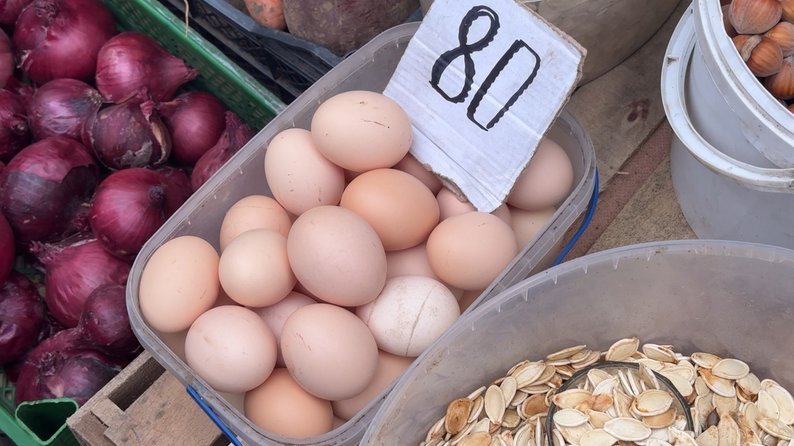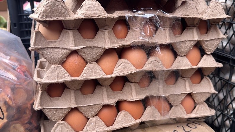 Від 70 і до 120 гривень за десяток курячих яєць просить на одному із луцьких ринків продавчиня Ольга. Вона привозить яйця на продаж із Кременця. Каже, що в неї цінова політика не змінилась, а люди купують, якщо їм дійсно треба.