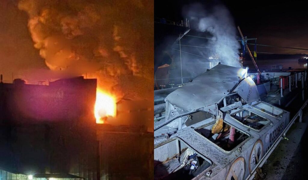 “Порти Одещини всю ніч зазнавали безперервних ворожих ударів. Внаслідок влучання безпілотників пошкоджені елеватори, склади цивільних підприємств, баржа, судна під прапорами Словаччини та Республіки Палау. На місцях влучань рятувальники ліквідовують пожежі. Працівники портів продовжують обстеження пошкоджень”, – наголосив Кулеба.
