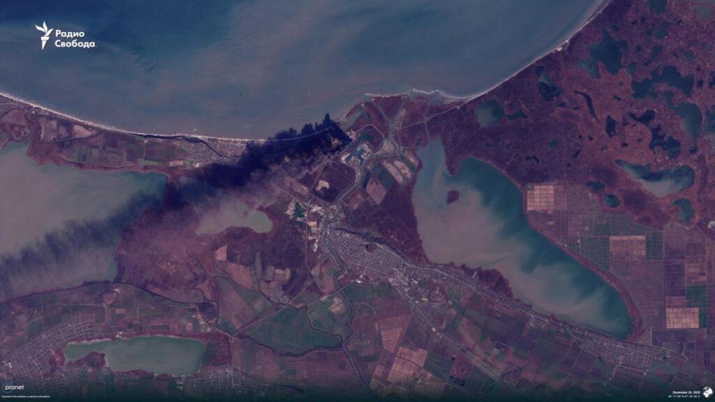 Наслідки удару по російському порту Темрюк / фото Радіо Свобода25 грудня далекобійні дрони завдали удару по нафтових резервуарах у морському порту Темрюк. Він знаходиться у Краснодарському краї країни-агресорки Росії.