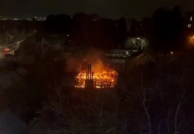 На опублікованих кадрах видно інтенсивне полум’я, що повністю охопило дах споруди.