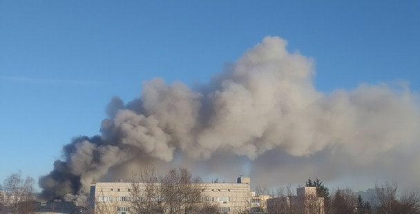 Рятувальники продовжують гасіння масштабної пожежі, яка сталася у Солом’янському районі столиці. На вулиці Волинській зайнялося триповерхове складське приміщення.