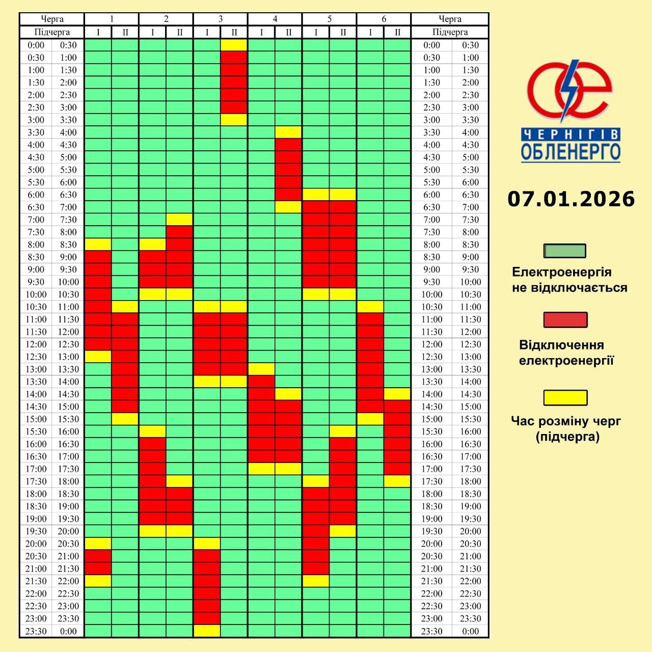 Графік відключення світла на Чернігівщині 7 січня