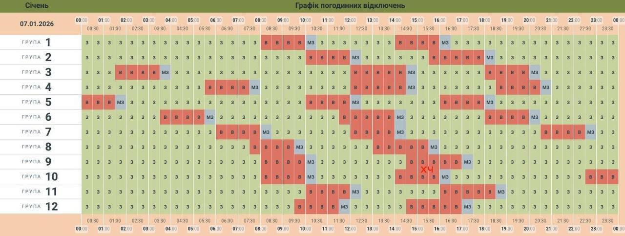 Графік відключення світла в Харківській області Графік відключення світла на Харківщині 7 січня: