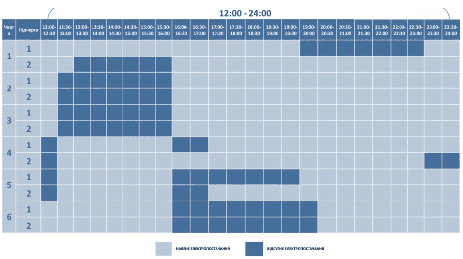 Графік відключення світла у Дніпропетровській області