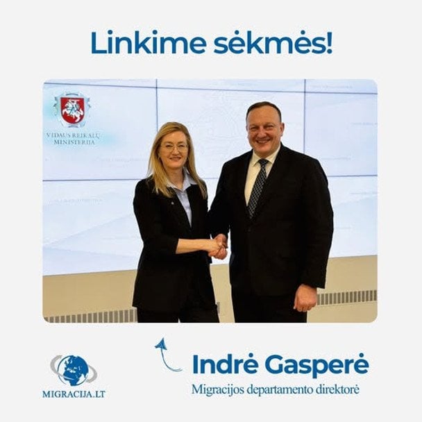 Індре Гаспере очолила Департамент міграції цього четверга, 8 січня. Її Відомство займається видачею посвідок на проживання, громадянством та контролем правового статусу іноземців.