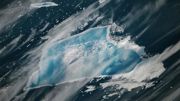 На фото також видно синьо-білі смуги — це «шрами» від тертя об дно Антарктиди, які збереглися протягом сотень років.
