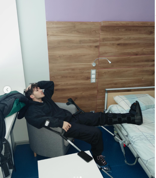 «Історія, яка почалася у вересні 2025 року, в турі США, після одного дуже невдалого кроку на сцені, місяці лікування, тонни льоду, перев’язки й все ж без операції не обійшлося. Такий мій вайб зараз», – написав музикант. У коментарях артисту побажали швидкого одужання.