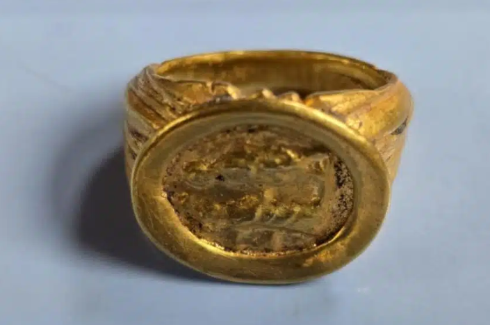 Каблучку виявили на глибині майже шести метрів у фінальні дні розкопкового сезону 2025 року. На золотому овальному безелі вигравірувано подружню пару – традиційний для Риму символ єдності та офіційного шлюбу. Прикраса вирізняється високою якістю роботи: овальна пластина припаяна до кільця, оздобленого тонкими канелюрами з обох боків. Вага й майстерність виконання знахідки вказують на те, що вона належала заможній родині в період розквіту міста.