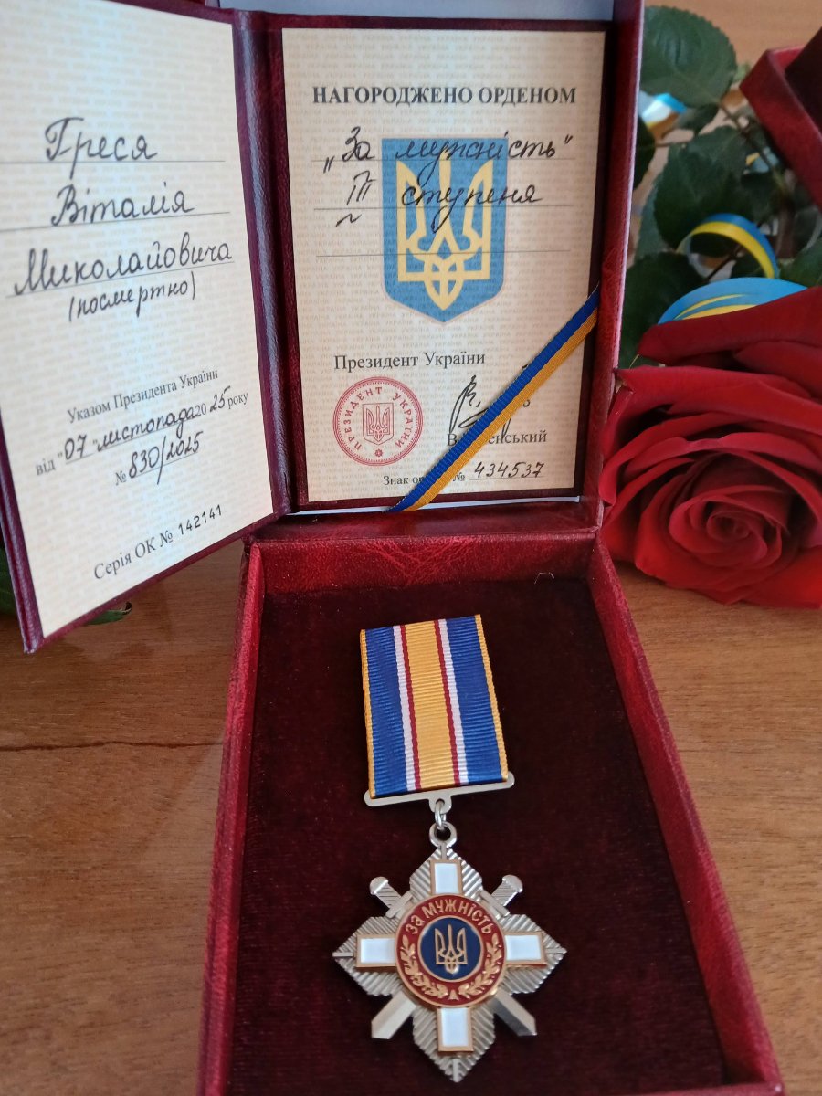 Указом Президента України орденом «За мужність» ІІІ ступеня (посмертно) нагороджено: Кміна Володимира Сергійовича, Греся Віталія Миколайовича.